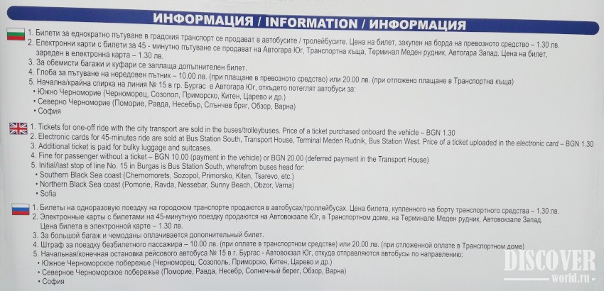 Price of the trip: 1.5 leva (buying from the driver).