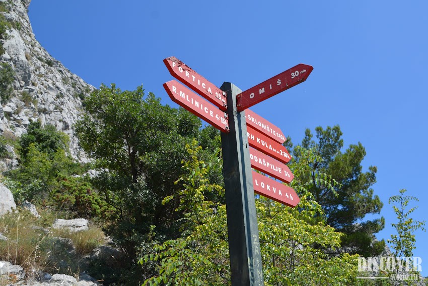 The second route (blue on the map) is a route that starts from the city side. Although it looks shorter on the map, you still need to add a piece to get from the center of Omis, so they are approximately equal in time.