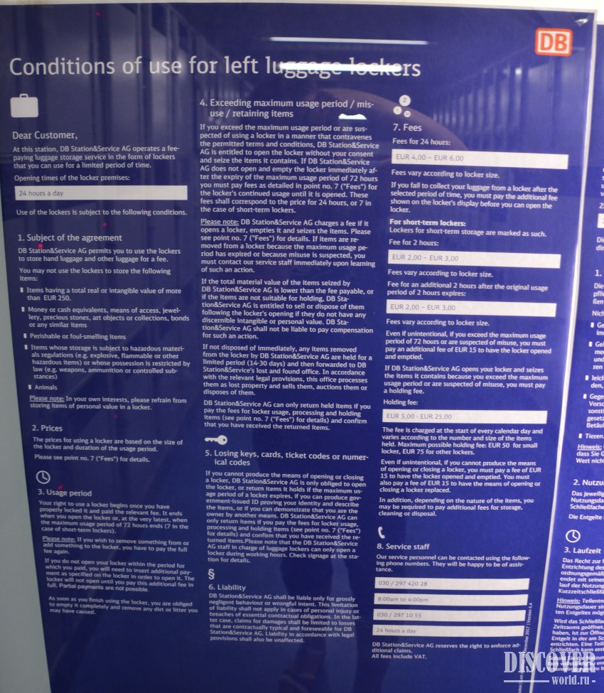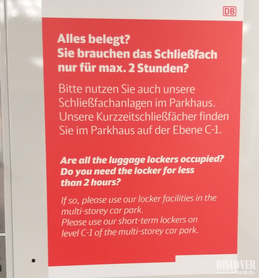 The main storage can be found close to 14-15 platforms, under the sign of the DB Gepack Center: