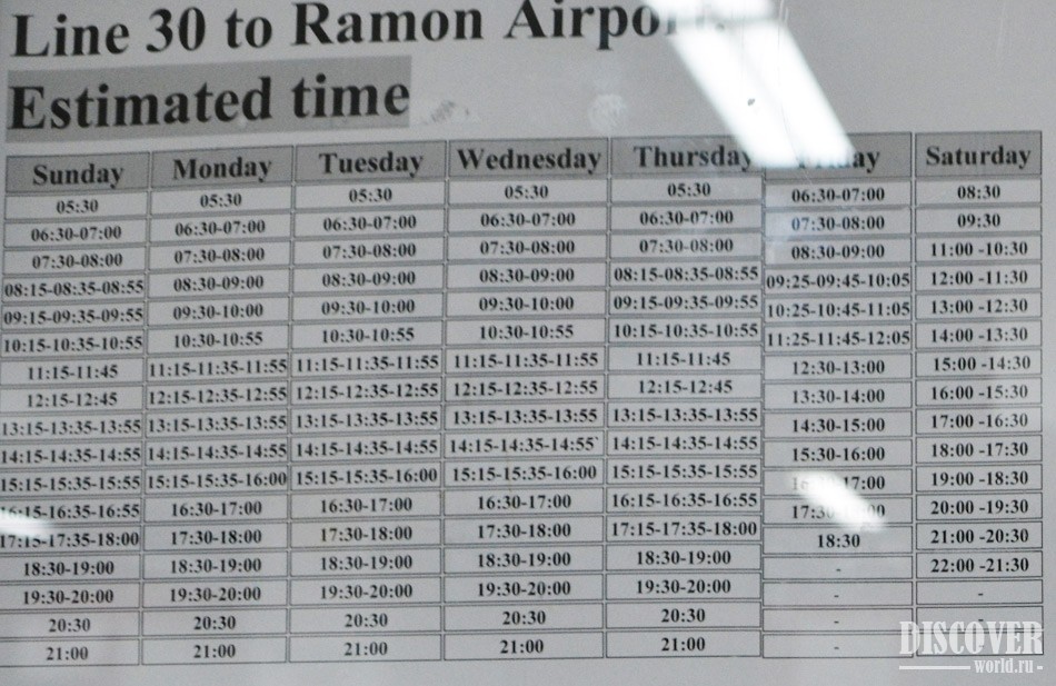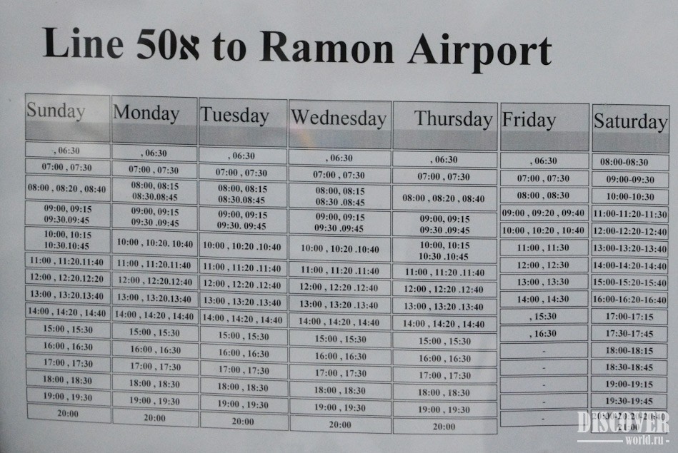 Schedule from the Eilat Central bus station to Ramon airport (2020):