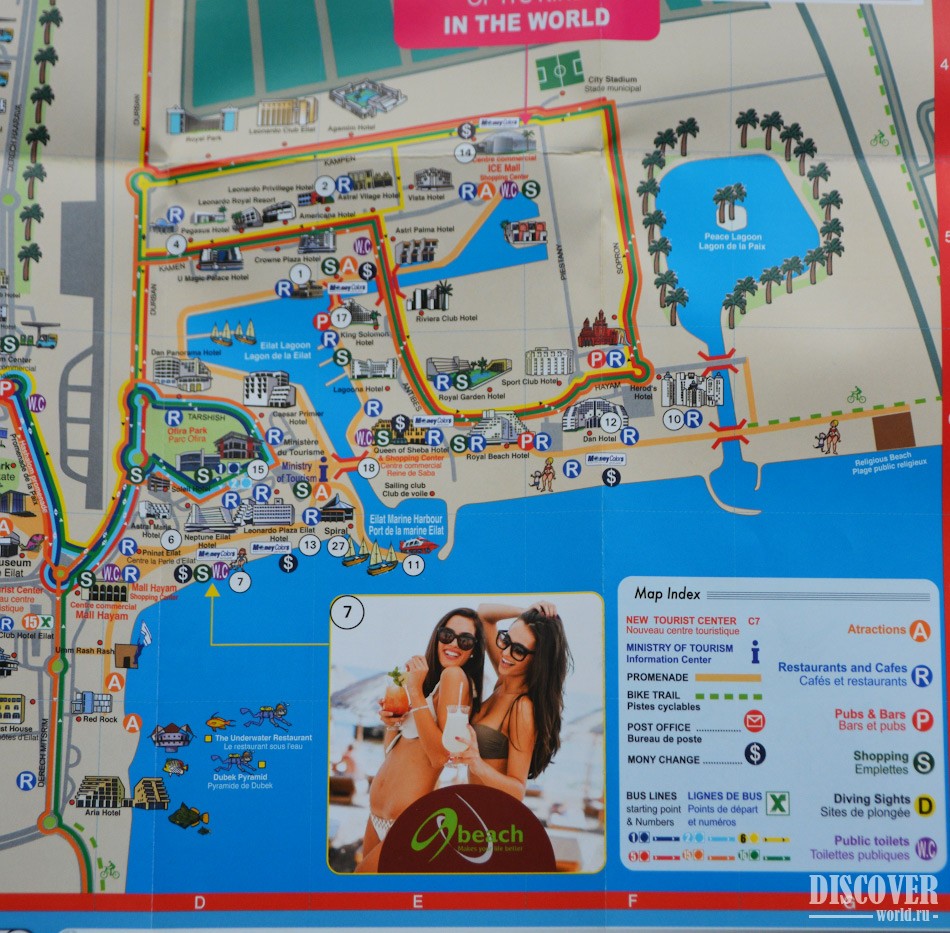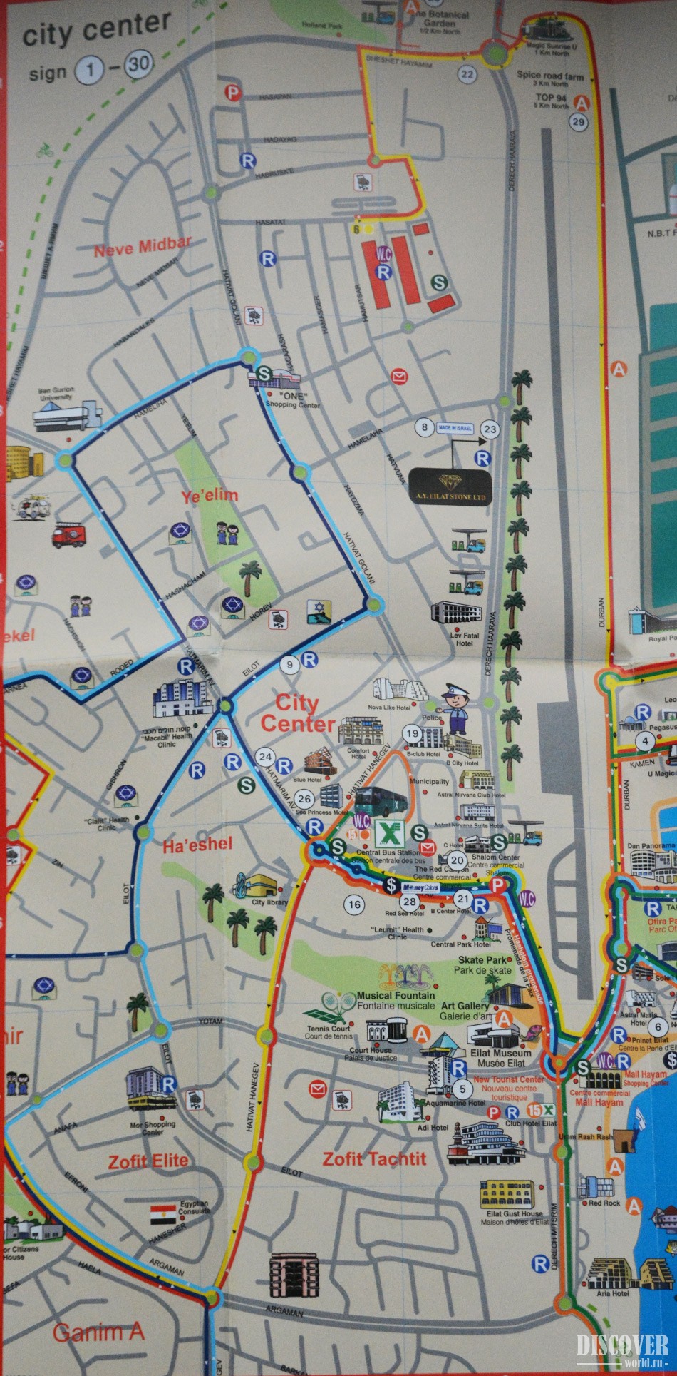 One of the popular routes is along the sea coast (beaches) - bus number 16 (Eilat - Taba border (with Egypt)). Bus number 15 runs in the opposite direction. Another route along the coast is bus number 30 (which also goes to Ramon Airport).