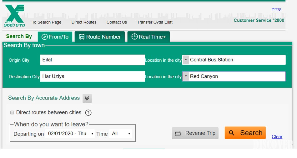 Select "Search by destination." Enter in the departure field - Eilat. In the destination field - Har Uzija - Red Canyon.