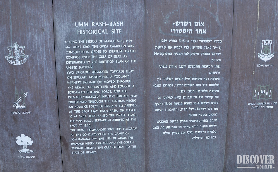 The monument name "Um-Rash-rush" is not accidental - it was Eilat's city name before the was (Umm Al-Rashrash).