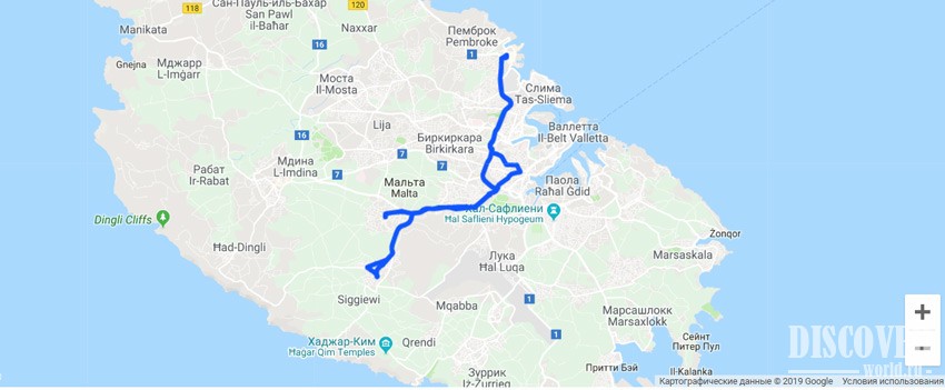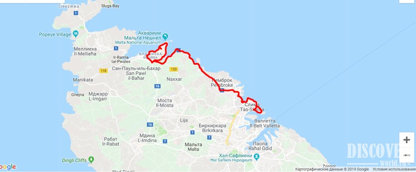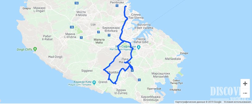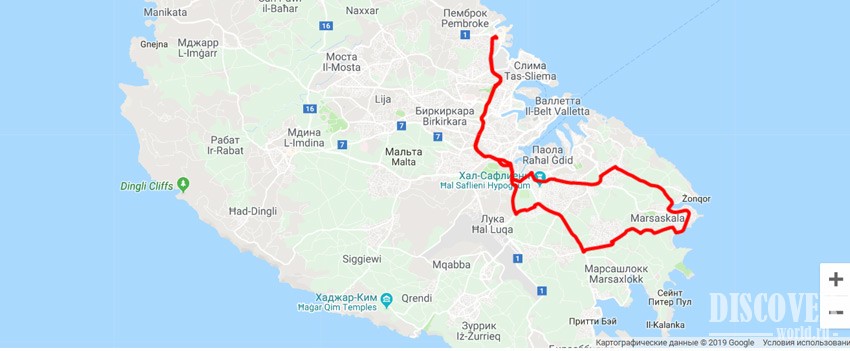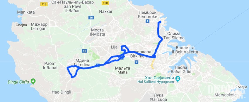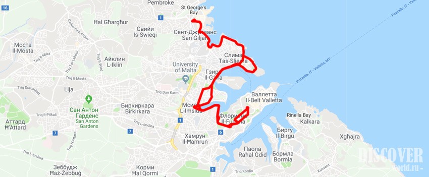 Full route: Il-Belt Valletta / Il-Floriana / Tal-Pieta / L-Imsida / Ta’Xbiex / Il-Gzira / Tas-Sliema / St. Julian’s - San Giljan