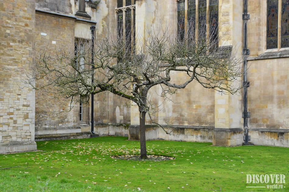 There is a story for tourists that the tree in Cambridge is the same tree from the legend (or rather his descendant). In fact, it is not true. This myth was invented by fans of the original story. The tree in Cambridge is a grafted descendant of the original tree that grew in the house of Isaac Newton mother in Woolsthrope, Lincolnshire. During a visit to his mother's garden Newton noticed how apple fell from the tree, and then began to study mechanism that set apple in motion.