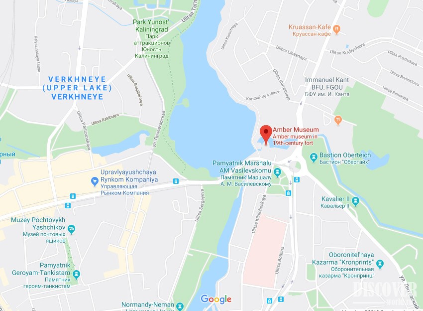 Precīza adrese: 236016, Kaļiņingrada, pl. Maršals Vasiļevskis, 1. (пл. Маршала Василевского, 1.)