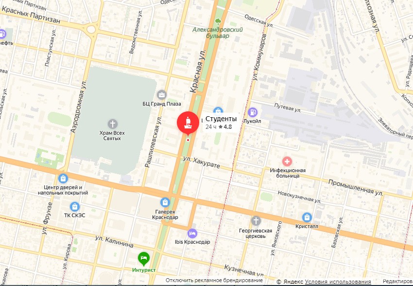 Piemineklis atrodas Krasnodaras centrālajā ielā, precīzā adrese: st. Krasnaya (Sarkana), pretī KubGTU (Kubanas Valsts Tehnoloģiju universitāte).