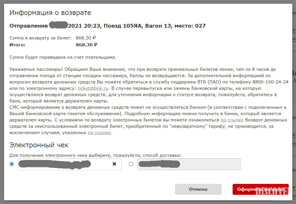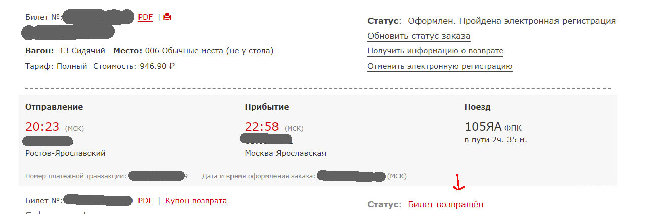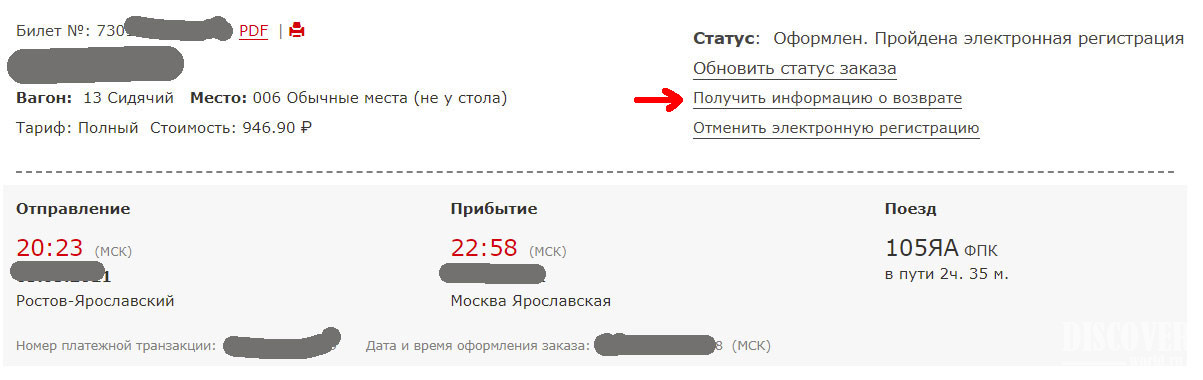 Ознакомившись с правилами, можно преступить непосредственно к возврату билета.