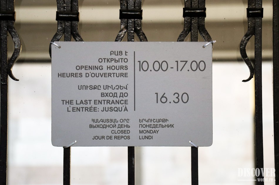 Есть платные экскурсии на армянском, русском, английском, французском и немецком (необходимо записываться заранее).