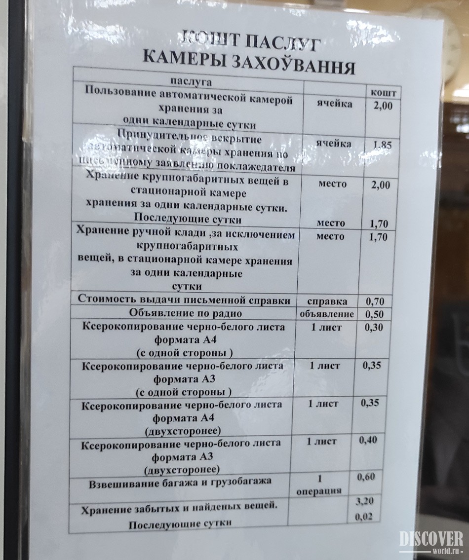Стоимость ячейки: 2 бел. руб. / сутки (можно положить столько вещей, сколько влезет, при удачном комбинировании у нас влезло 3 маленьких чемодана ручной клади).