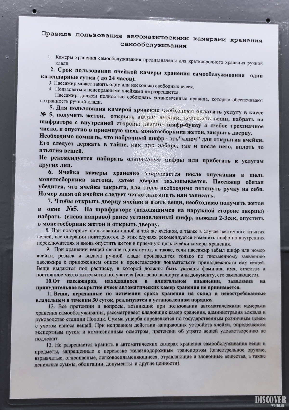 Камера хранения старая, поэтому и схема действий немного необычная.