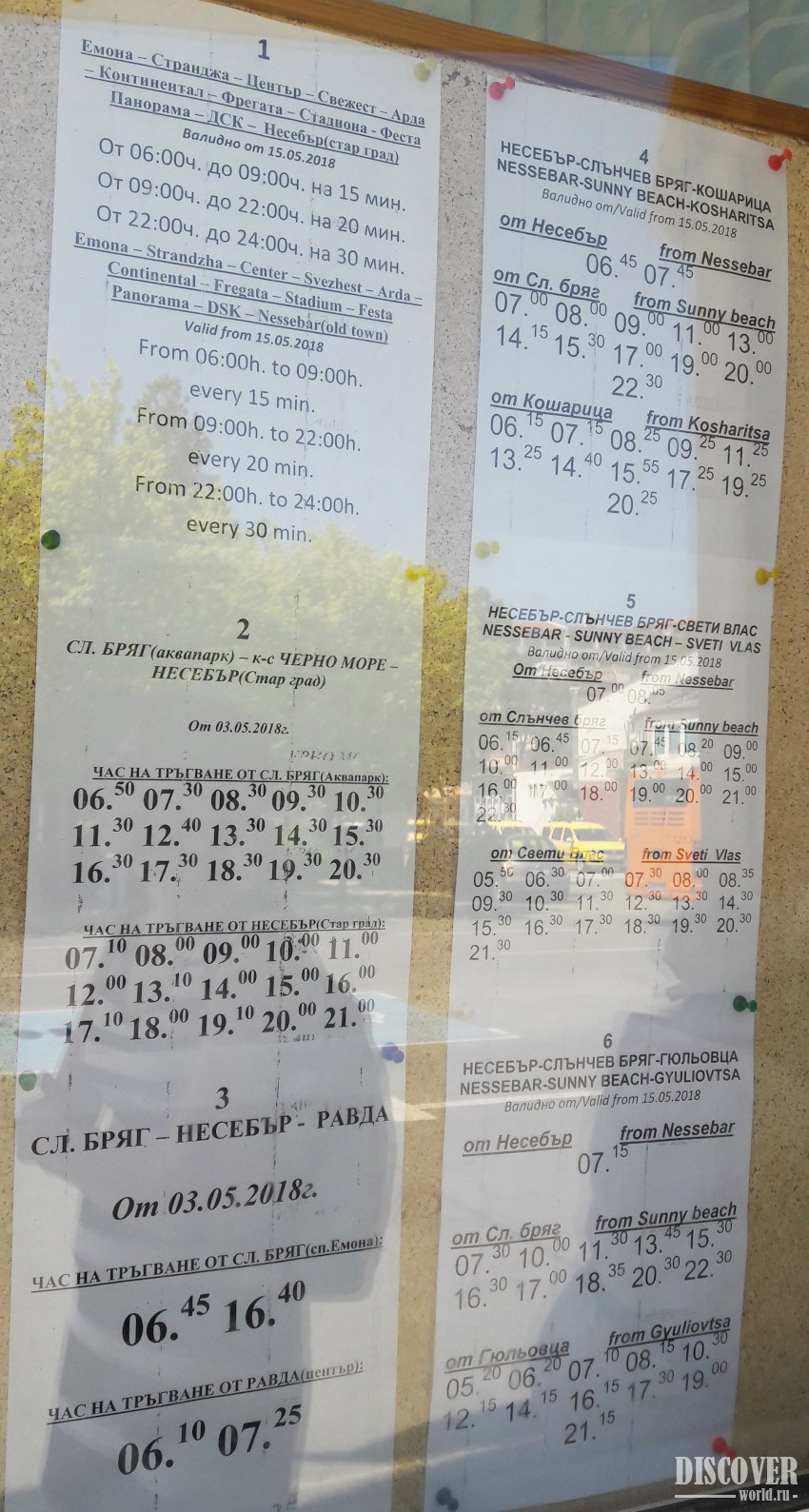 Расписание маршрутов от автобусной станции Солнечного берега 2018 год