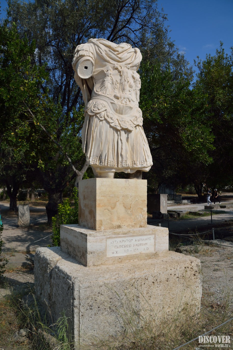 Одним из наиболее важных примеров римской имперской скульптуры на Агоре в Афинах является статуя Адриана. Статуя была обнаружена в Агоре 25 июля 1931 года во время проводившихся там раскопок. Статуя Адриана расположена в восточной части древней Агоры. Изначально статуя располагалась перед стоей Зевса (Stoa of Zeus), но позднее была перемещена в текущее местоположение.