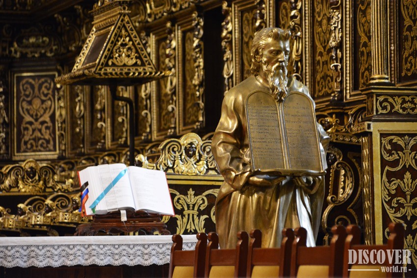 Строгий и скромный внешний вид собора резко отличается от роскошного интерьера внутри.