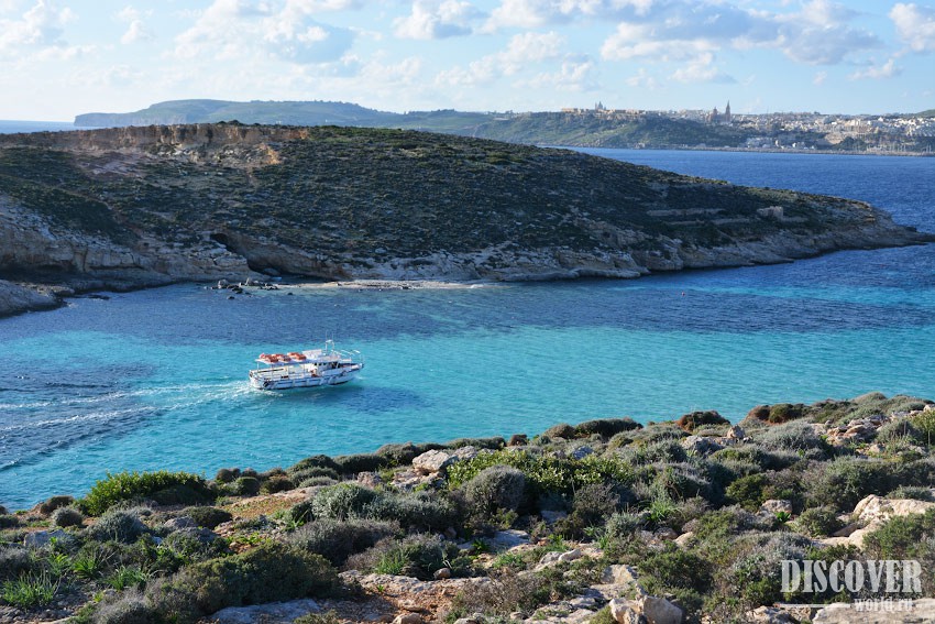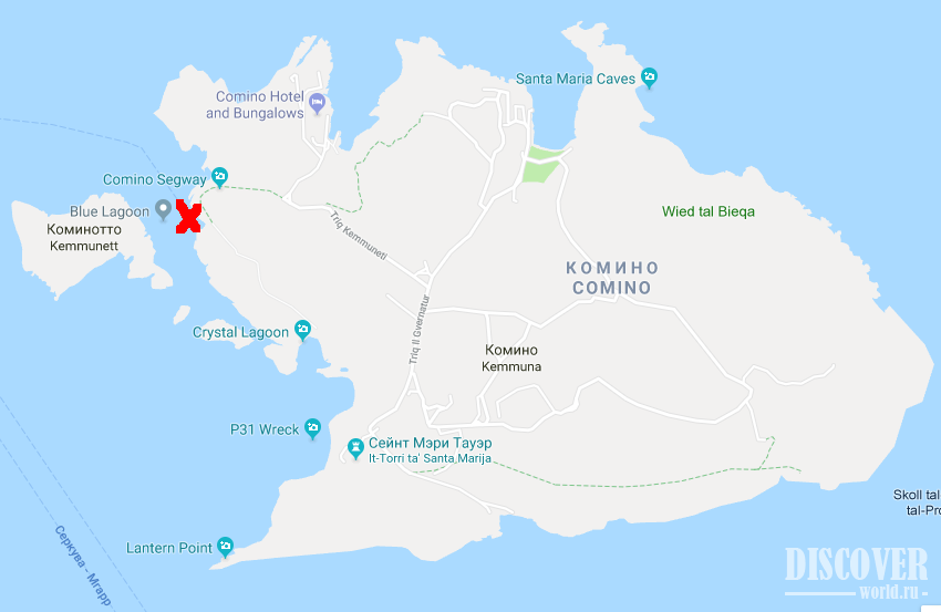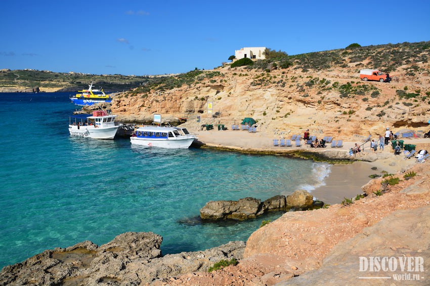 Главная достопримечательность острова Комино - это Голубая лагуна (Blue Lagoon, Bejn il-Kmiemen). Цвет воды в этом месте просто потрясающий! Помимо цвета воды у Голубой лагуны есть еще одно большое преимущество - пляж тут песочный (на Мальте в основном каменистые пляжи). В основном все прибывающие на остров корабли и лодки останавливаются неподалеку от Голубой лагуны, поэтому по прибытии на остров стоит обязательно на нее посмотреть, а лучше - искупаться.