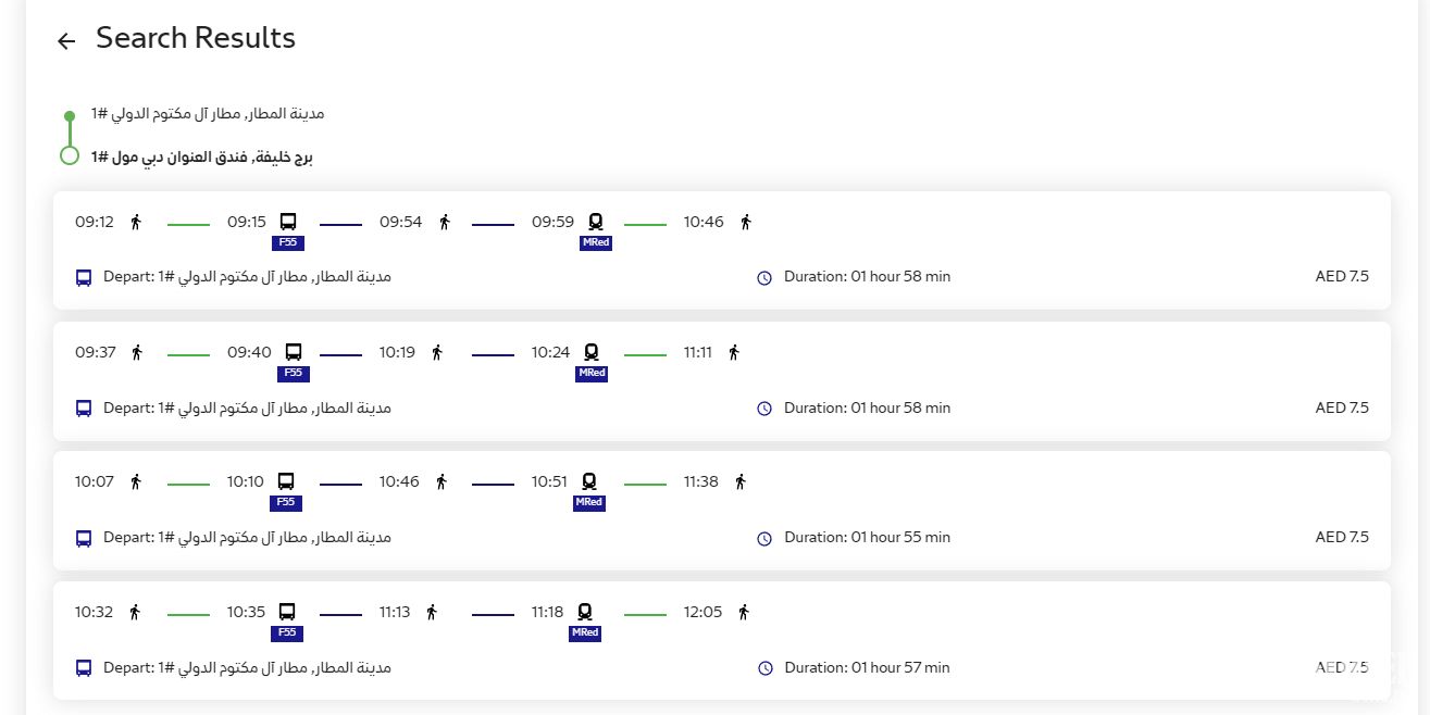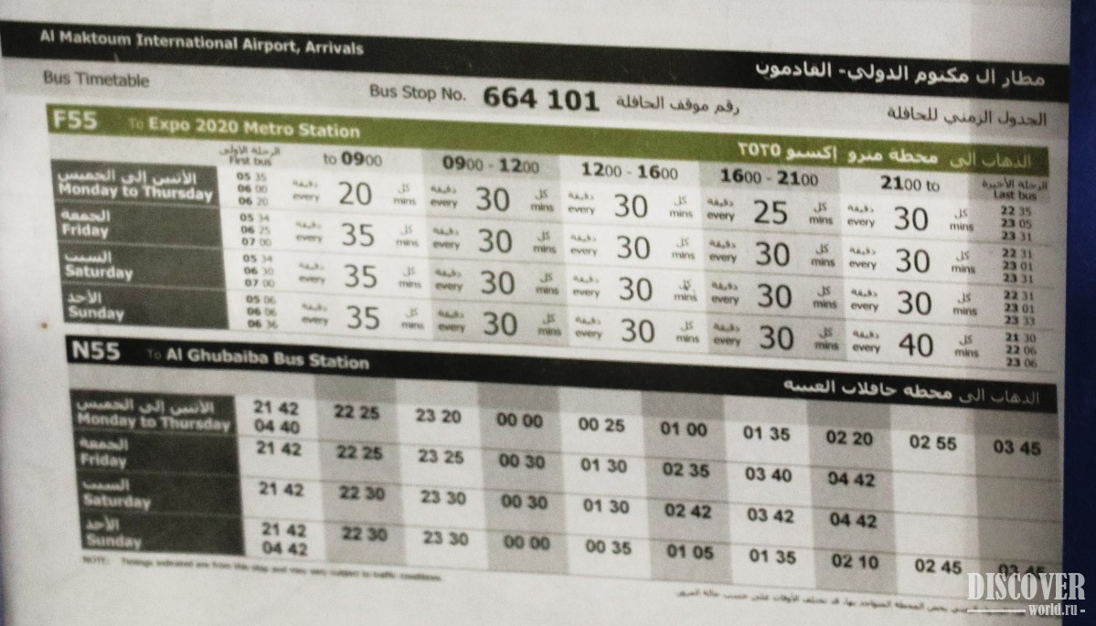 Следует учесть, что поездка от аэропорта до центра Дубая (берем за конечную точку Бурдж Кхалифу / Дубай Молл) займет достаточно продолжительное время (автобус F55 + метро) - примерно 2 часа (без учета ожидания автобуса).
