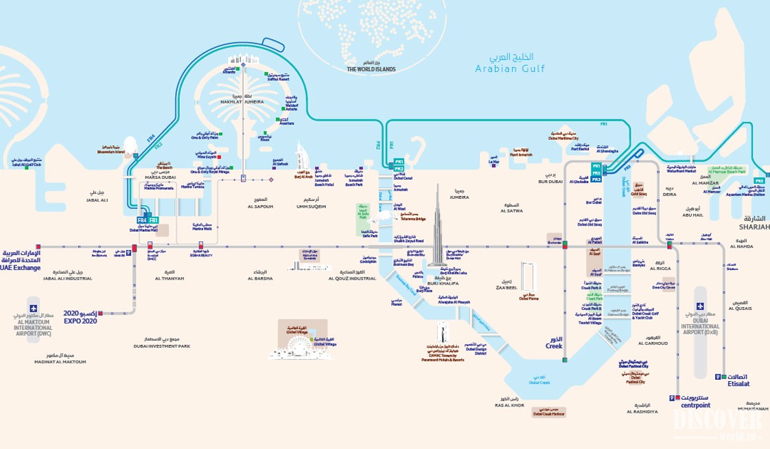 - От станции Old Souq Дубая до станции Al Sabhkha Abra и наоборот (Dubai Old Souq Station - Al Sabhkha Abra Station ).