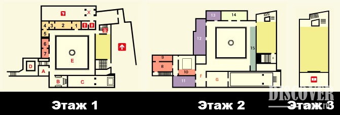 Музей довольно интересный, но не большой - его можно обойти примерно за час (все зависит от того, какой темп вы выберете, если цель просто пробежаться - тогда времени уйдет намного меньше). Музей состоит из трех этажей, при этом последний третий этаж - это одна комната, в которой находится панорама Лиссабона, выложенная из плитки. План здания можно посмотреть на картинке ниже: