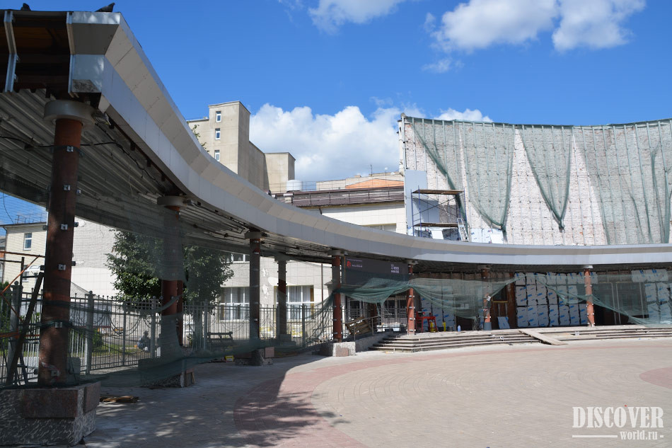 Рядом со зданием филармонии находится сквер, где можно найти фонтан и несколько скамеек. Также там находится аллея калужских композиторов.