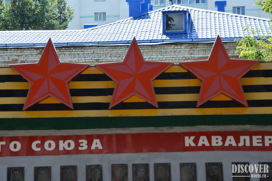 На монументе увековечены портреты и имена людей, кому было присвоено это звание.