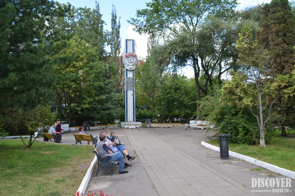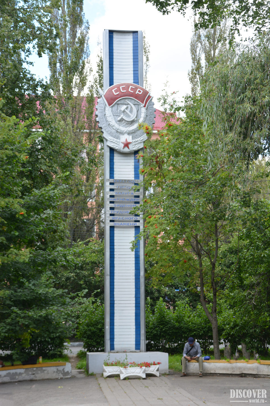В сквере находится стела с изображением ордена Трудового Красного Знамени. Ордена Трудового Красного Знамени - это награда времен СССР, вона вручалась за трудовые заслуги.