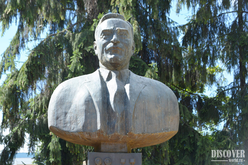 Бюст установлен на высоком постаменте, на котором можно прочитать памятные слова: