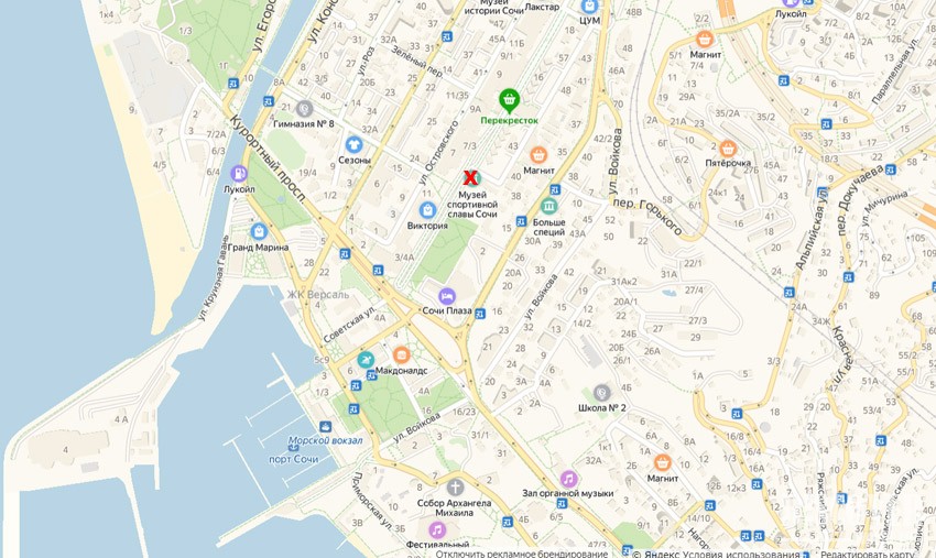 Точный адрес: 354000, Сочи, ул. Советская, 26А (рядом с администрацией г. Сочи).