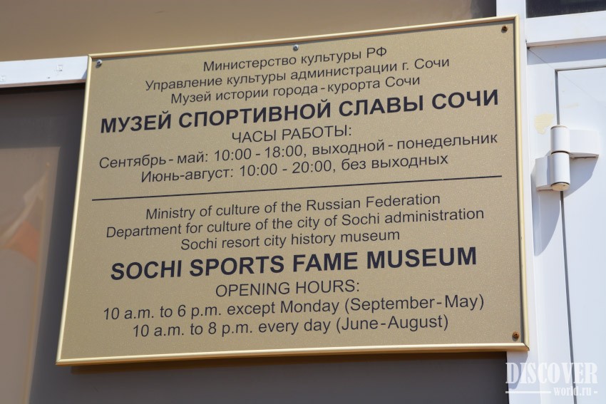 Музей спортивной славы Сочи - это филиал Музея истории города-курорта Сочи. Музей открылся относительно недавно - 8 июня 2010 года.