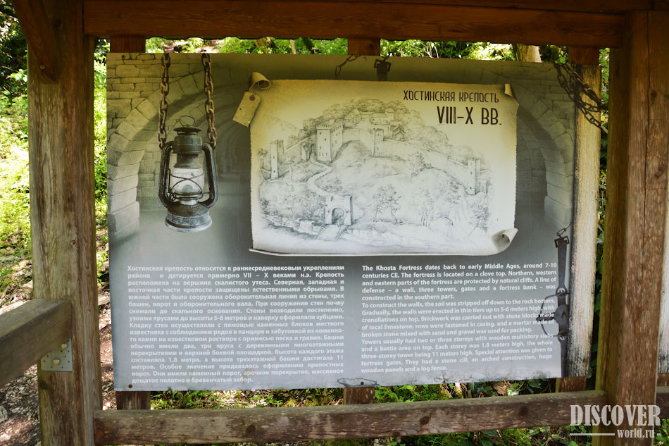 Древняя Хостинская крепость находится в Тисо-самшитовой роще, на маршруте Большой круг.