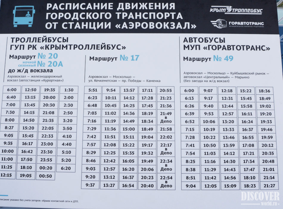 Расписание общественного транспорта от аэропорта Симферополя (2020 год):