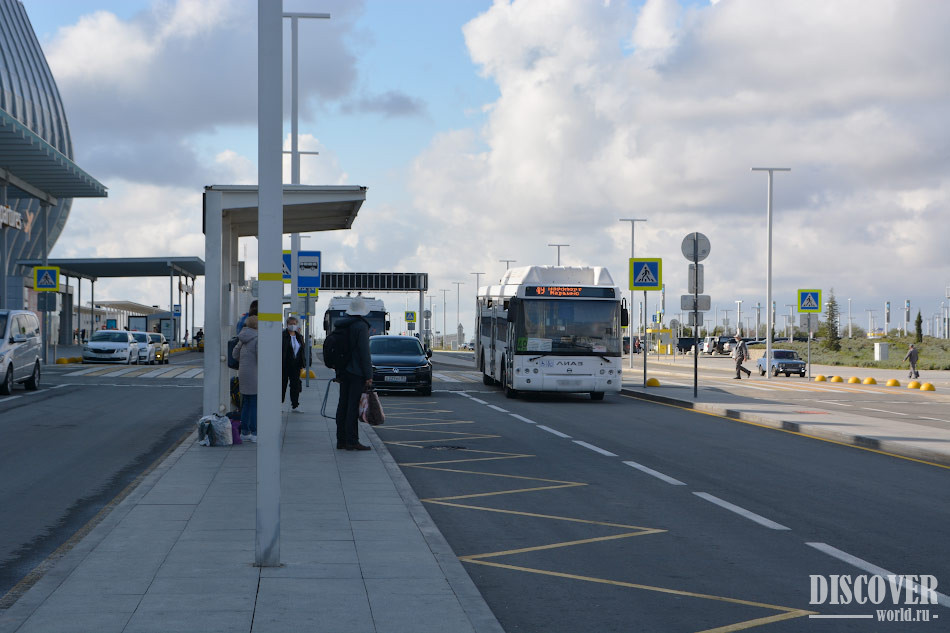 Остановка находится прямо напротив выхода из здания аэропорта: