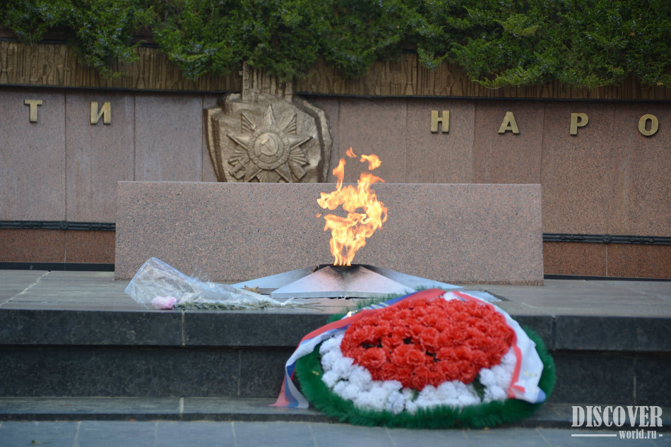 Интересный факт - Вечный огонь, который был зажжен над мемориалом, был доставлен с двух других мемориалов - "Гора Митридат" и "Сапун-Гора".