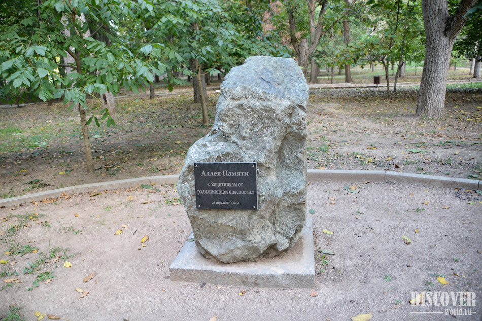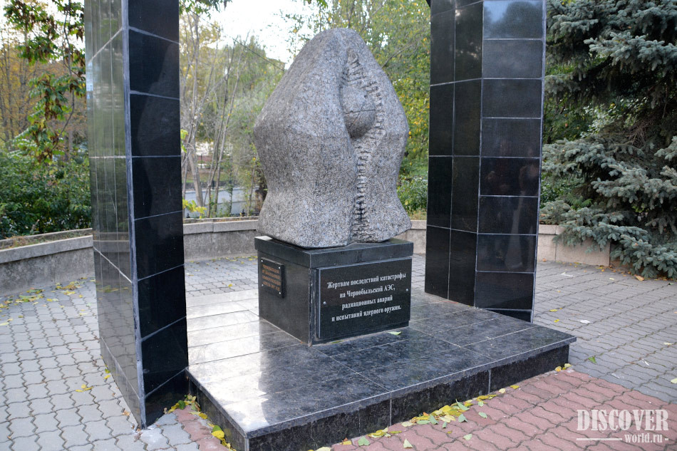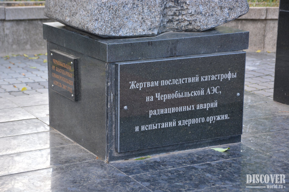 Памятник ликвидаторам аварии на Чернобыльской АЭС в Симферополе находится недалеко от входа в парк им. Гагарина.