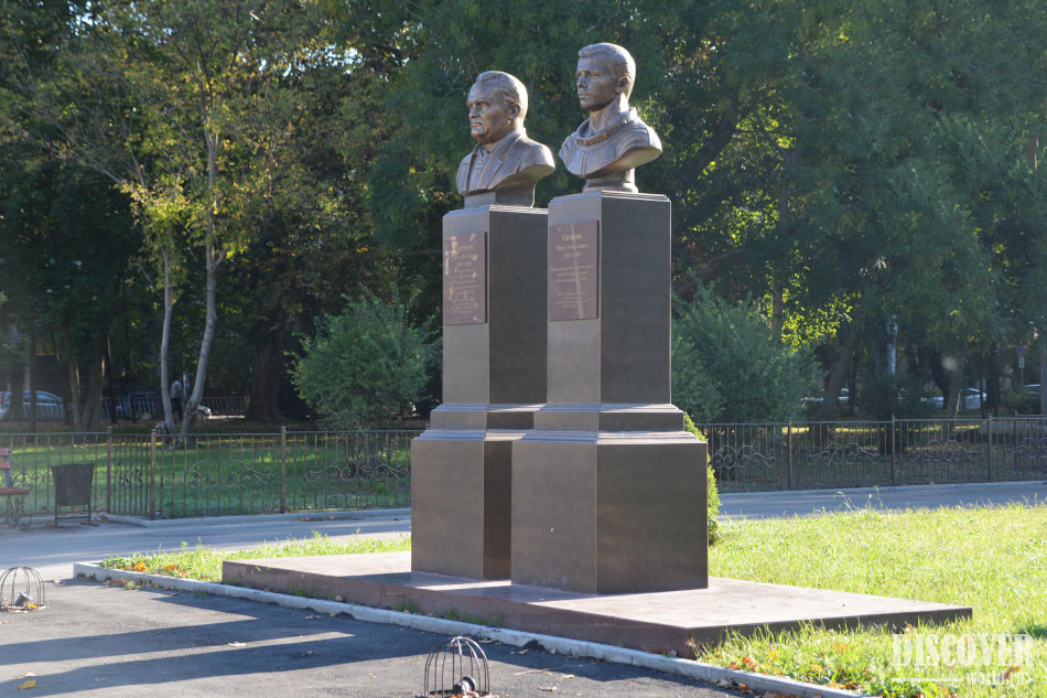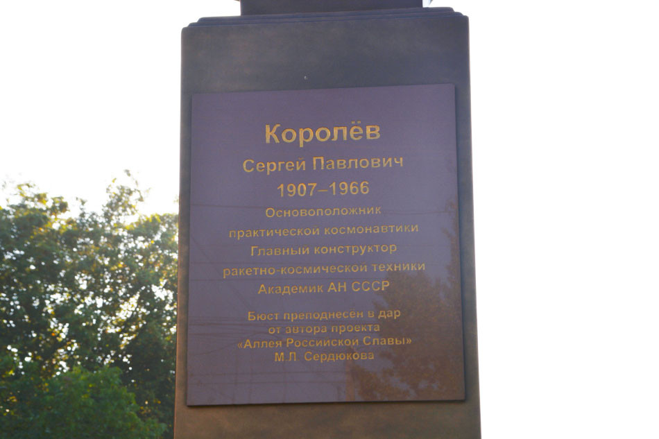 Авторы: скульпторы Сергей Олешня (бюст Королева) и Анатолий Дементьев (бюст Гагарина).