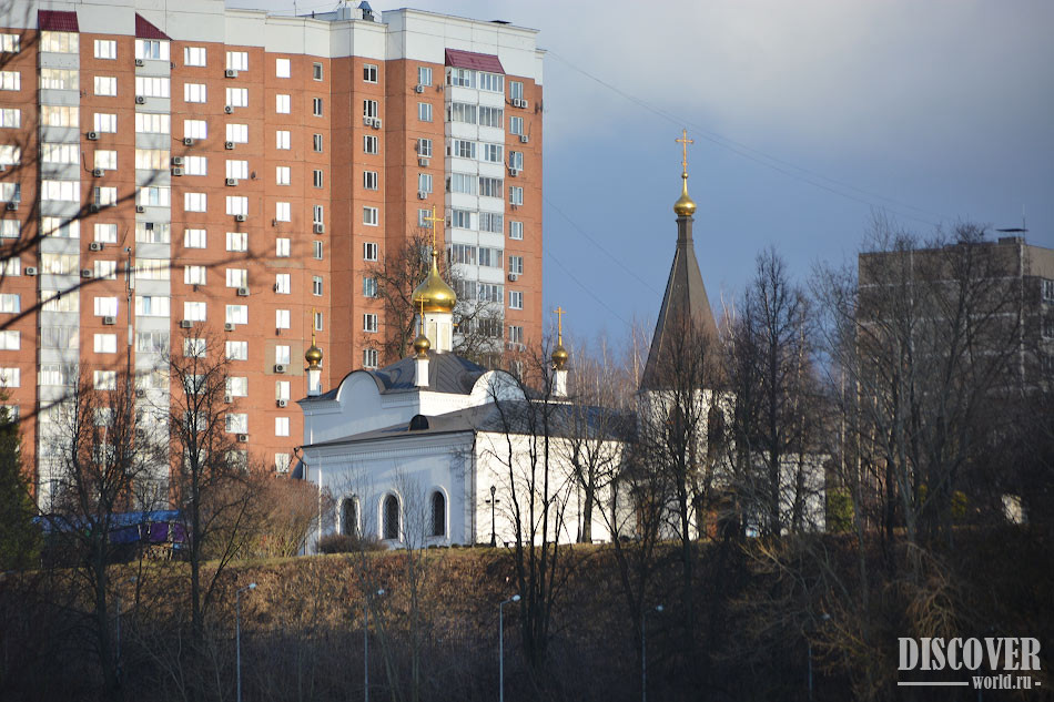 Храм Воскресения Христова расположен на берегу речки Пахра, рядом с парком им. В. Талалихина.