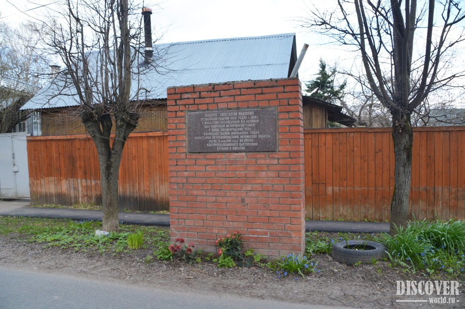 Памятная плита достаточно простая - небольшая кирпичная стена, на которой прикреплена мемориальная табличка с кратким описанием биографии Макарова: