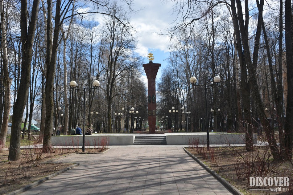 Стела "Населенный пункт воинской доблести" в Звенигороде находится в небольшом сквере на Советской улице.