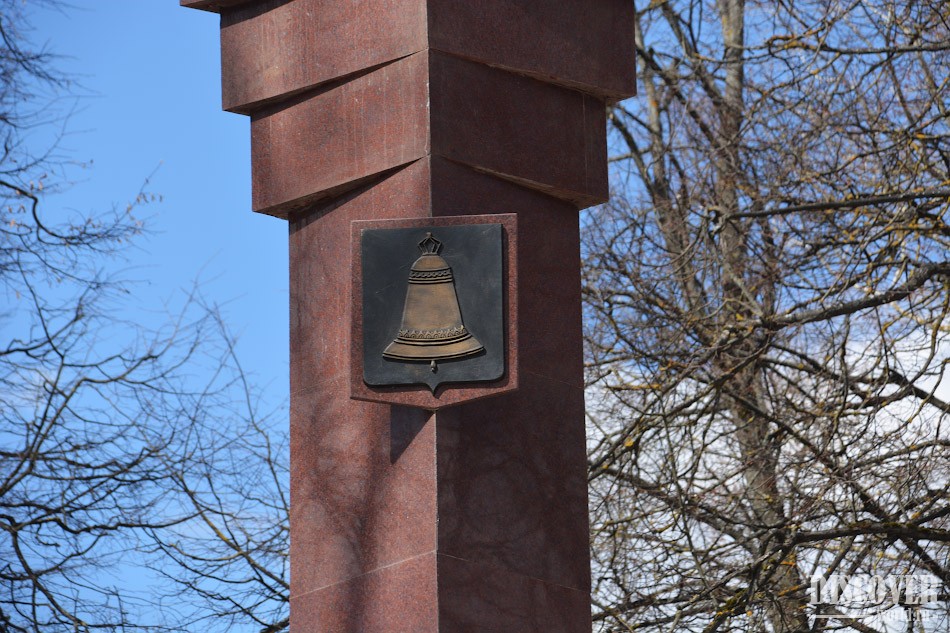 Чуть ниже можно наблюдать и герб Звенигорода - колокол с узорами: