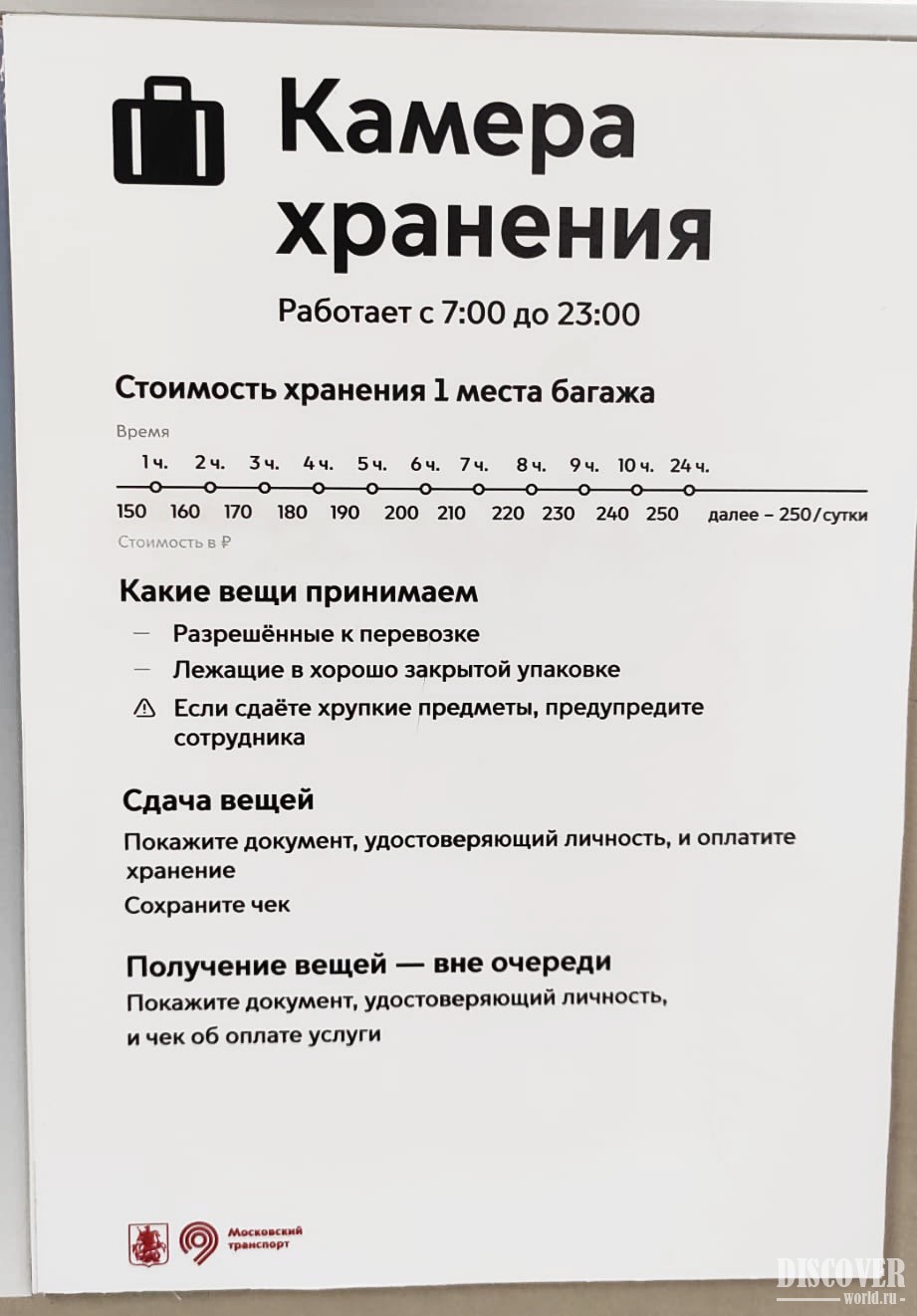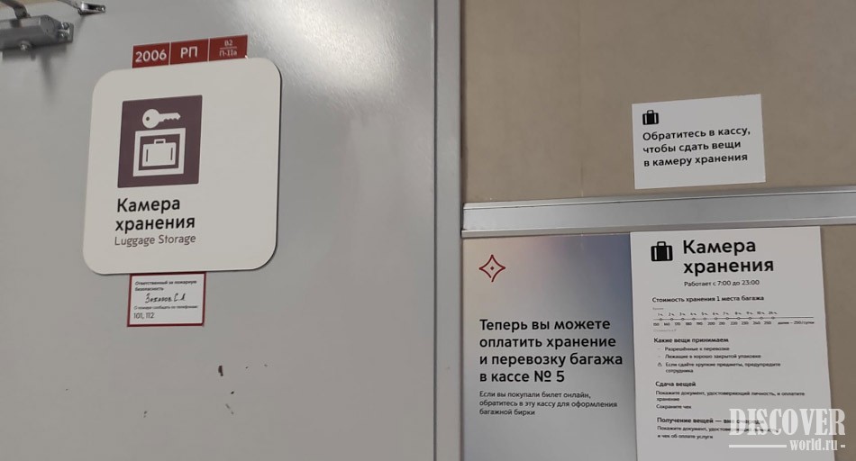 Для того, чтобы сдать вещи в камеру хранения, необходимо обратиться в кассу номер 5. Там вы покажете документ, удостоверяющий личность, и оплатите услугу.
