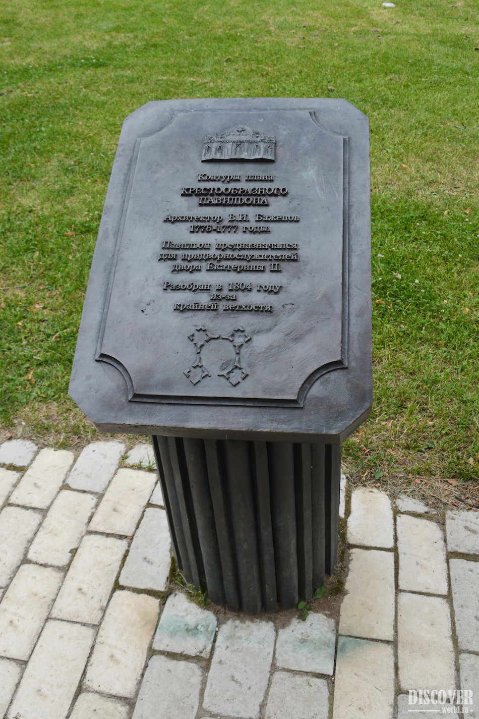 Фундамент Крестообразного домика - это все, что сохранилось от Крестообразного корпуса, который использовался как павильон для придворнослужителей двора Екатерины II.