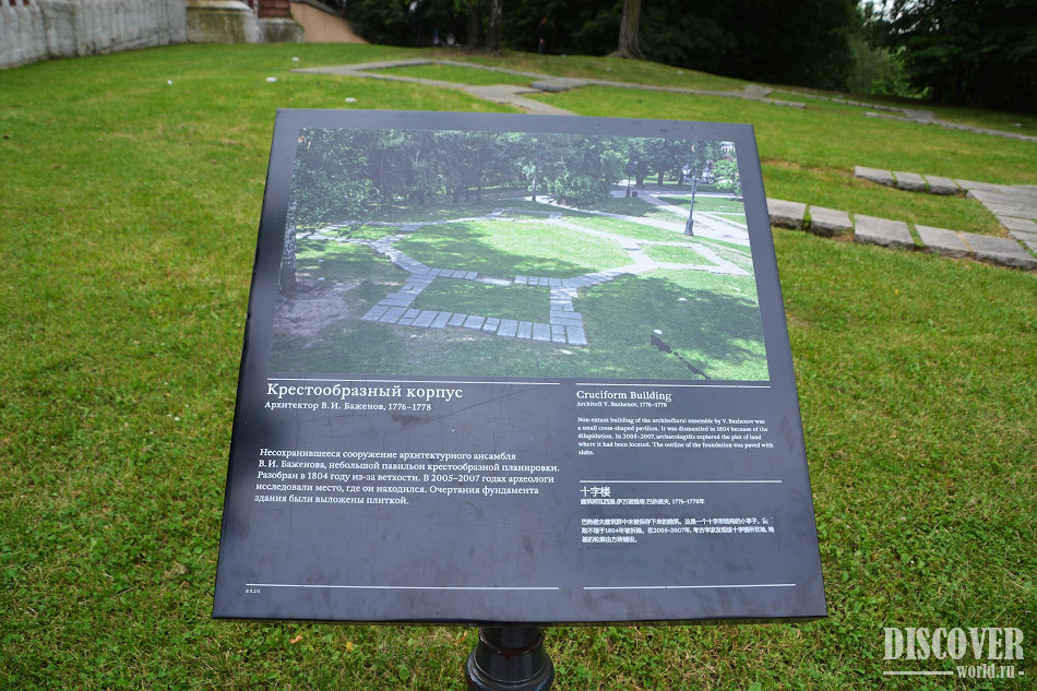 Фундамент Крестообразного домика находится в парке Царицыно. Подробнее о парке можно прочитать в отдельной статье: