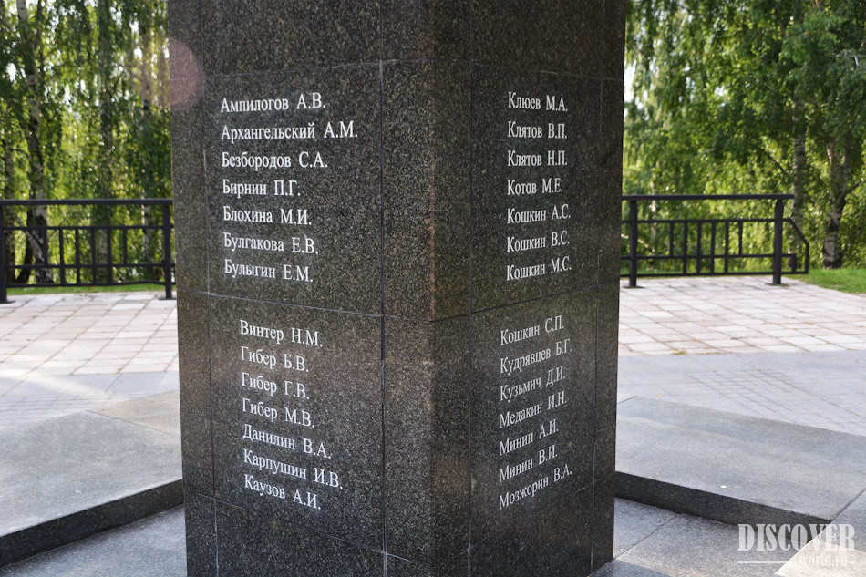 Высота памятника - 12 метров. Архитектор - С. Г. Белов.