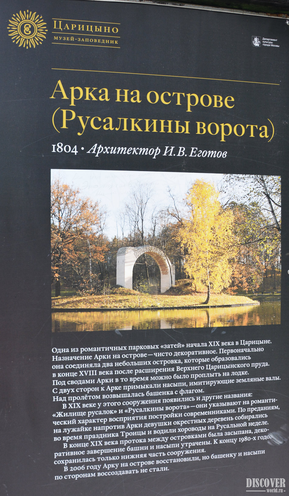 Русалкины ворота - это арка на острове Русалкин, который расположен в музее-заповеднике Царицыно.
