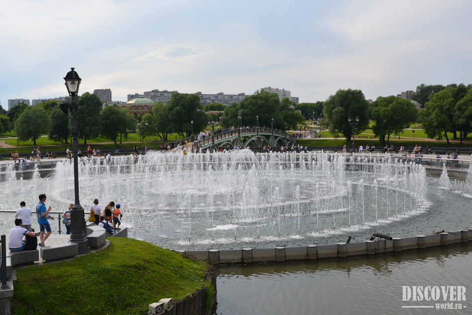 Недалеко от главного входа в парк можно увидеть красивый фонтан, расположенный на Царицынских прудах.