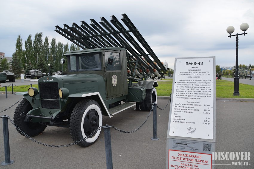 В парке находится бесплатная выставка военной техники, расположенная под открытым небом. Там можно встретить танки, БРДМ, БТР, противотанковые артиллерийские орудия, гаубицы, «Катюша», самолеты Пе-2, МиГ-17, По-2, МиГ-27, вертолеты.