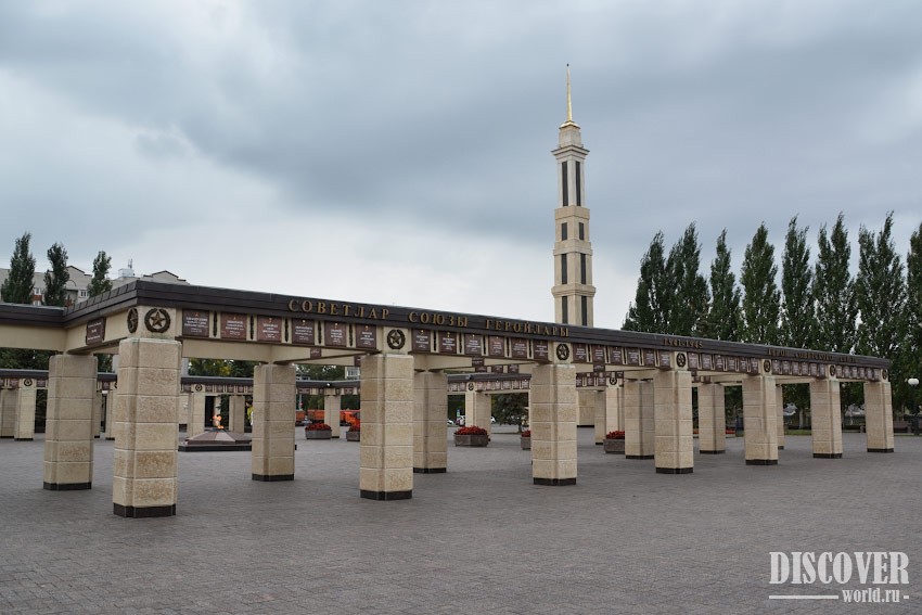 В парке находится мемориальный комплекс памяти Героям Великой Отечественной войны. В центре мемориального комплекса горит Вечный огонь, а вокруг - колонны, на которых закреплены таблички с именами Героев Советского Союза, Героев Социалистического труда и полных кавалеров Орденов Славы. Мемориал был построен в 1995 году к 50-летнему юбилею Победы в Великой Отечественной войне.