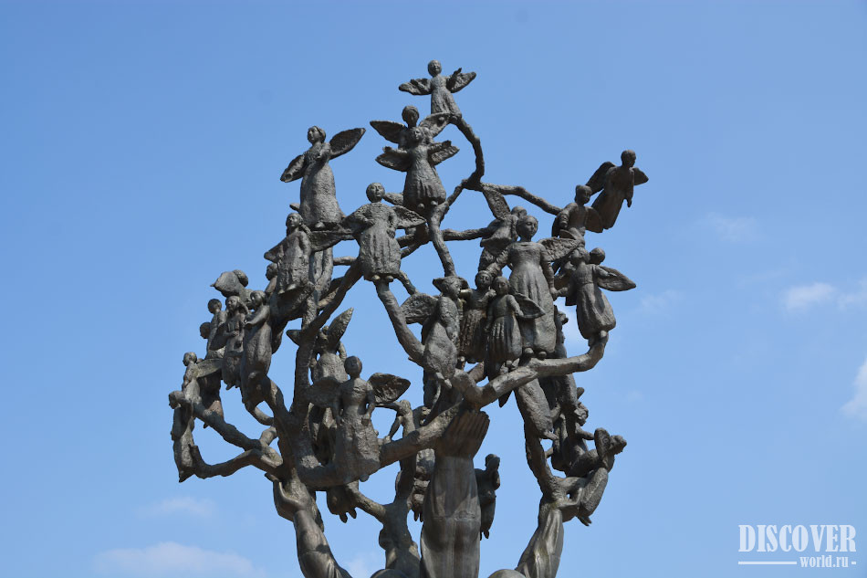 В центре "Города ангелов" находится "Древо скорби" - скульптура, изображающая женские силуэты (ствол дерева), которые держат в своих руках ангелов, символизирующих погибших детей (крона дерева).