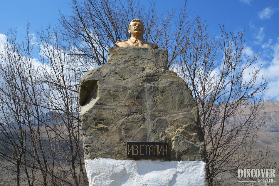 Памятник Сталину находится у поселения Барзикау, рядом с мемориалом участникам Великой Отечественной войны.