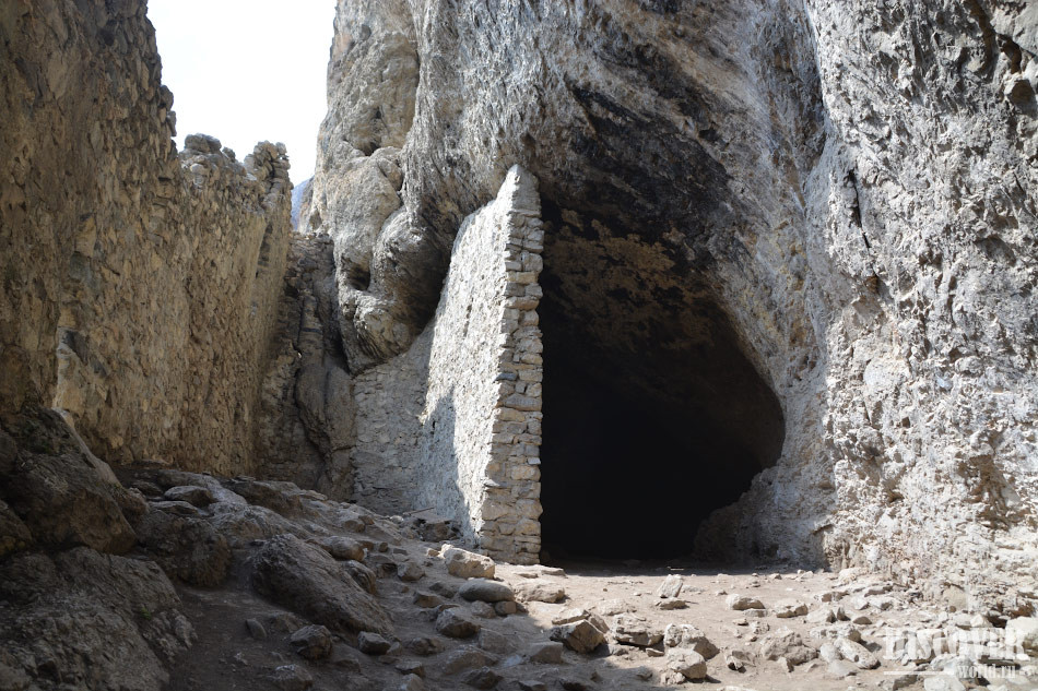 Чтобы забраться внутрь, необходимо подняться по ступенькам, а затем пролезть в достаточно узкую лазейку (вид изнутри крепости):