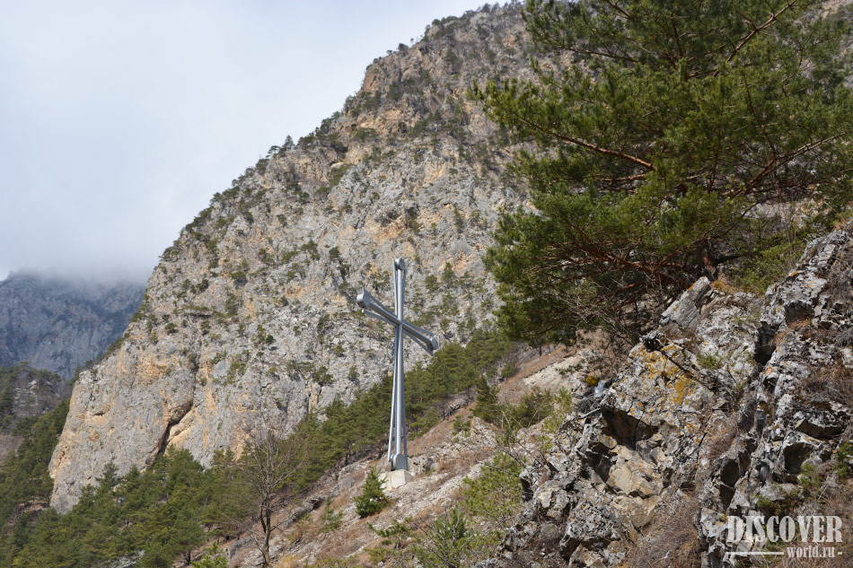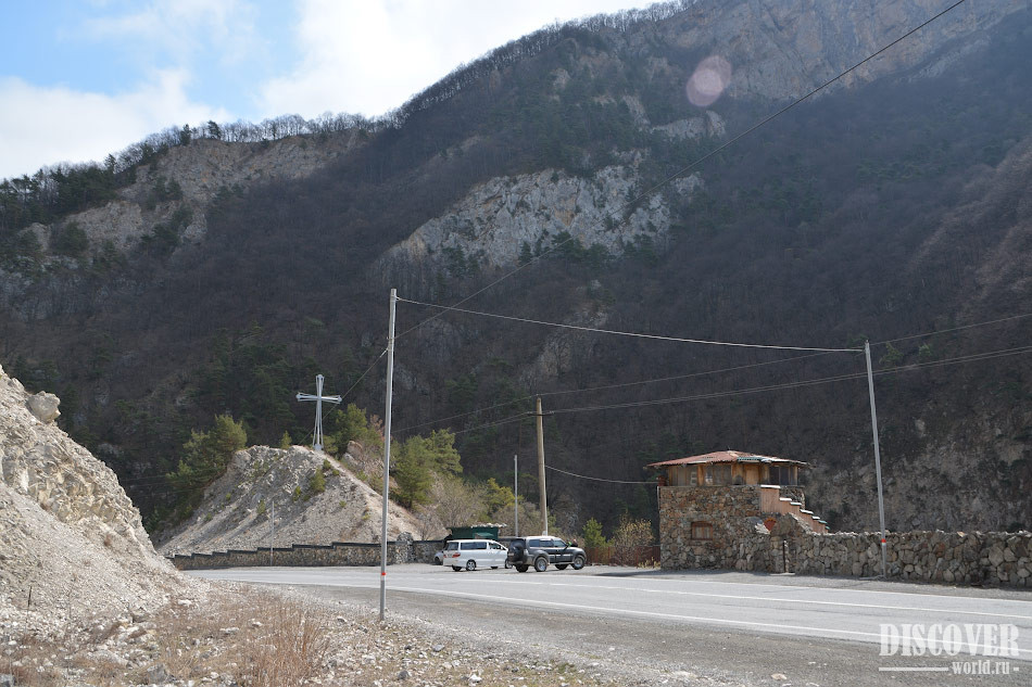 Далее - около 1 км пешком вдоль дороги.